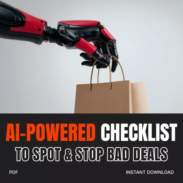 Don’t let sneaky scams or inflated prices fool you again. Download the AI-Powered Checklist to Spot & Stop Bad Deals today and discover how to filter out bad deals with AI like a pro. Shop smarter, save more, and let your AI do the heavy lifting!
